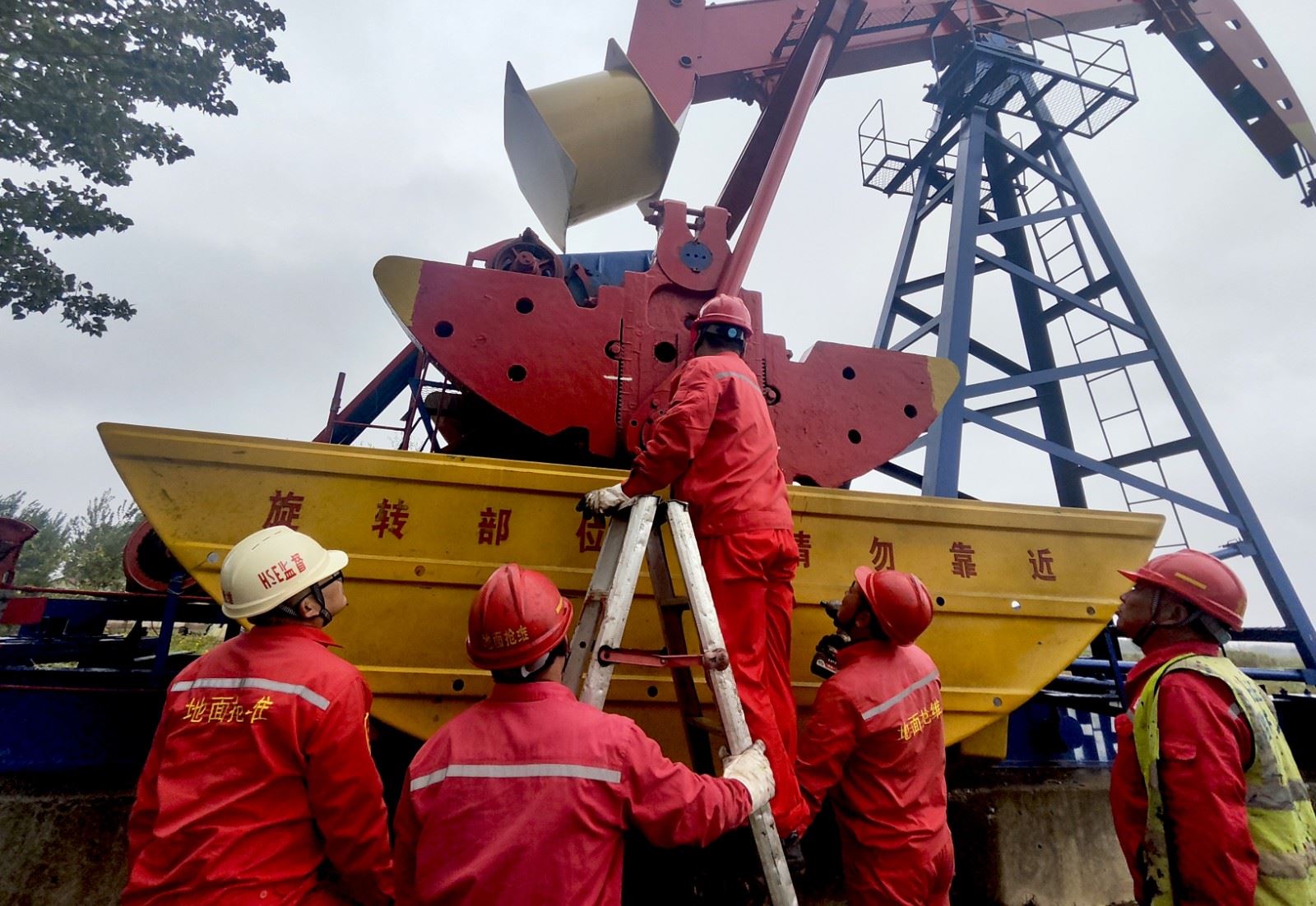 10月24日,地面工程抢维修中心濮东注采一工区注采设备维保班正在处理胡5-28井电机轴承设备异响问题。进入第四季度以来,地面工程抢维修中心周密部署,打响生产攻坚战。各基层单位加大巡检力度,重点对低洼地带、边缘井站周边环境进行拉网式排查,确保油田油气生产平稳运行。