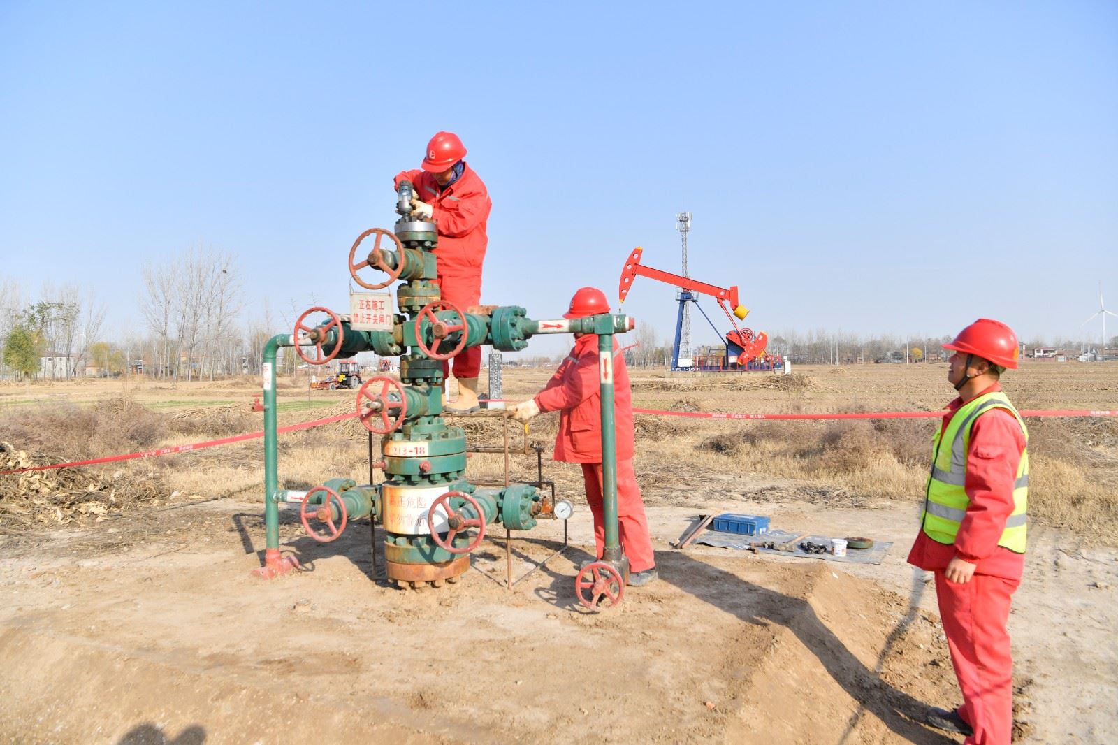 12月5日,濮城采油厂采油管理四区组织地面工程抢维修中心注采二工区维保班员工对文213-18井更换测试闸门法兰。该厂各基层生产单位瞄准全年生产经营目标,加强油水井措施运行,强化生产安全风险管控和隐患排查治理,确保各项生产安全高效运行。