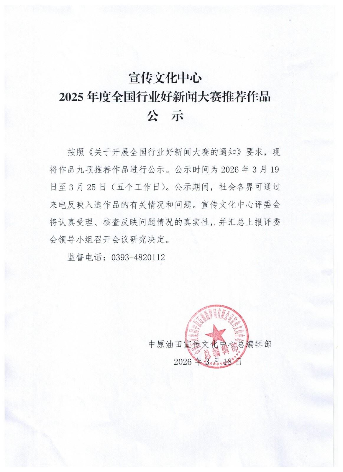 2025年度全国行业好新闻大赛推荐作品公示(作品九项)